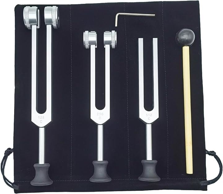 音叉 クリスタルチューナー セット マレット 台座付き 128 256 512 収納袋( シルバー)